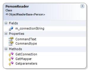 และต่อไปนี้เป็นตัวอย่างของ การใช้งาน ObjectReaderBase โดยเราจะทำการ สร้าง child class ชื่อ PersonReader ดังนี้