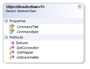 เราจะทำการสร้าง Base class ที่มีหน้าที่ในการ map ข้อมูลที่ได้จากการ ประมวลผล command มาสร้างเป็น object ของข้อมูลนั้น และนำมาใส่ไว้ใน collection นะครับ เราจะสร้าง base class ที่เป็น generic นะครับมีหน้าตอดังนี้