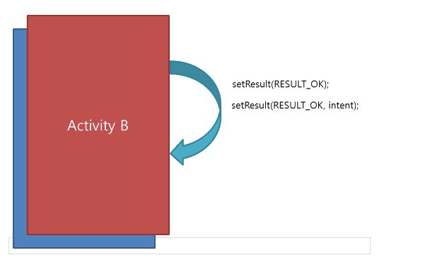 จะเห็นว่าการส่งค่ากลับนั้น ก็ส่งผ่าน Intent โดยใช้ putExtra method แล้วสั่ง finish เลย เป็นการเป็นหน้า activity ไปด้วยเลย สุดท้าย ในด้าน currentActivity ให้เขียน overried method ที่ชื่อว่า onActivityResult method จะถูกเรียกทันทีหลังจาก newActivity ปิดลงและส่งค่ากลับ ตัวอย่าง code ดังนี้ครับ
