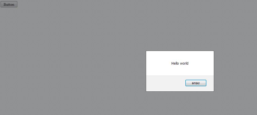 จาก code เราอ้างอิง ชื่อ Button1 ด้วย #Button1 นะครับ เมื่อ click ให้แสดง window มีข้อความ Hello world นั่นเอง จะได้ผลตามรูป ครับ