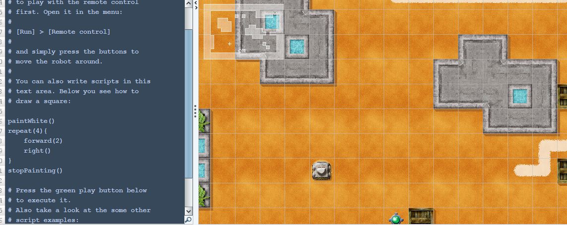 เมื่อสั่งทำงาน หรือ Run จะพบว่า เจ้าหุ่นเดินทางไปในทิศทางที่มัน หันไปอยู่ไปเรื่อยๆ จยจะพบผนังแล้วก็หยุดเพราะไปไม่ได้ เราจะต้อง ดังนั้นเรามีคำสัง frontIsObstacle เอาไว้ตรวจสอบว่าข้างหน้าเรามีอะไรขวางไหม แล้วเราจะหมุนหุ่นไป หนึ่งครั้งด้วยคำสั่ง right แล้ว วนซ้ำไปเรื่อย ๆ แบบนี้
